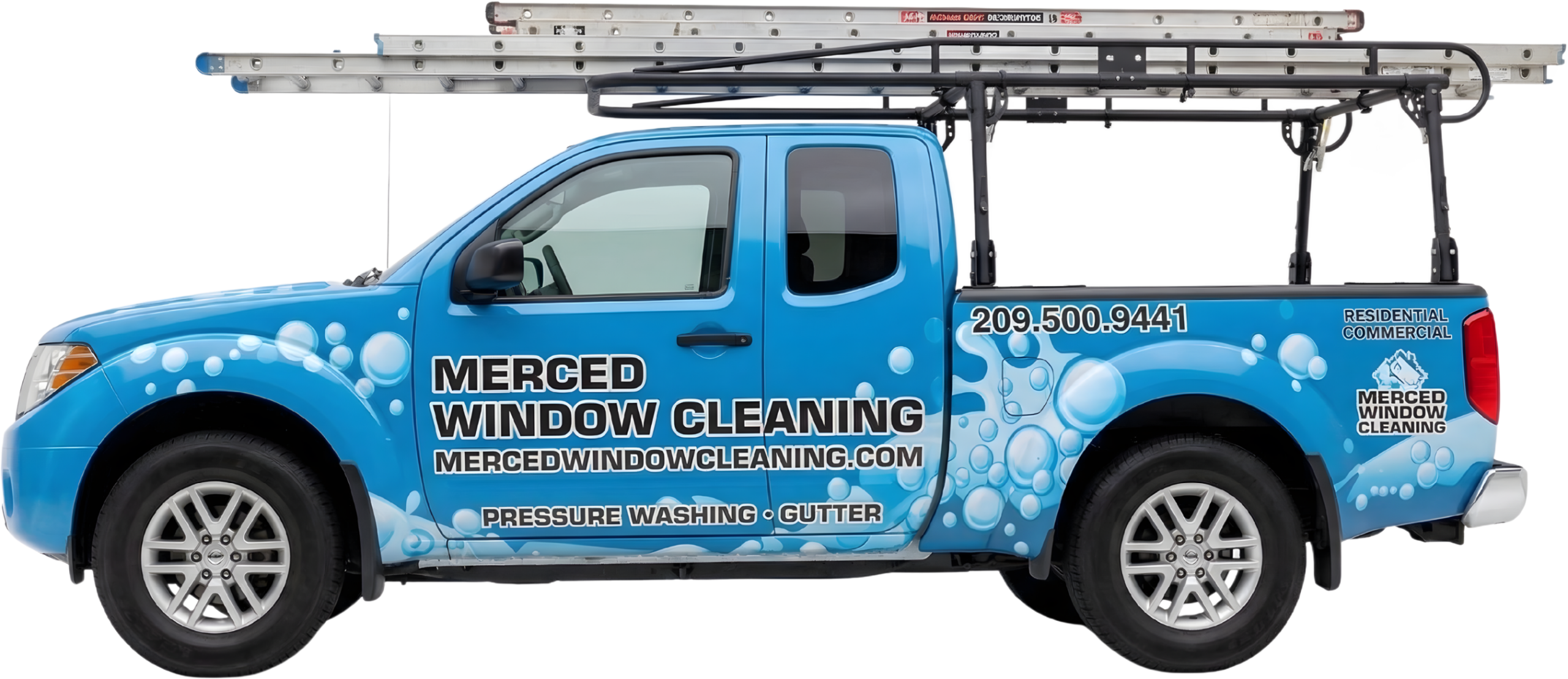 We’re Merced Window Cleaning, a locally owned exterior cleaning company serving Merced, Turlock, and Los Banos. Window cleaning is what we’re known for, and we back it up with gutter cleaning, pressure washing, and house washing, amongst other exterior cleaning services to take care of everything from the roofline down.